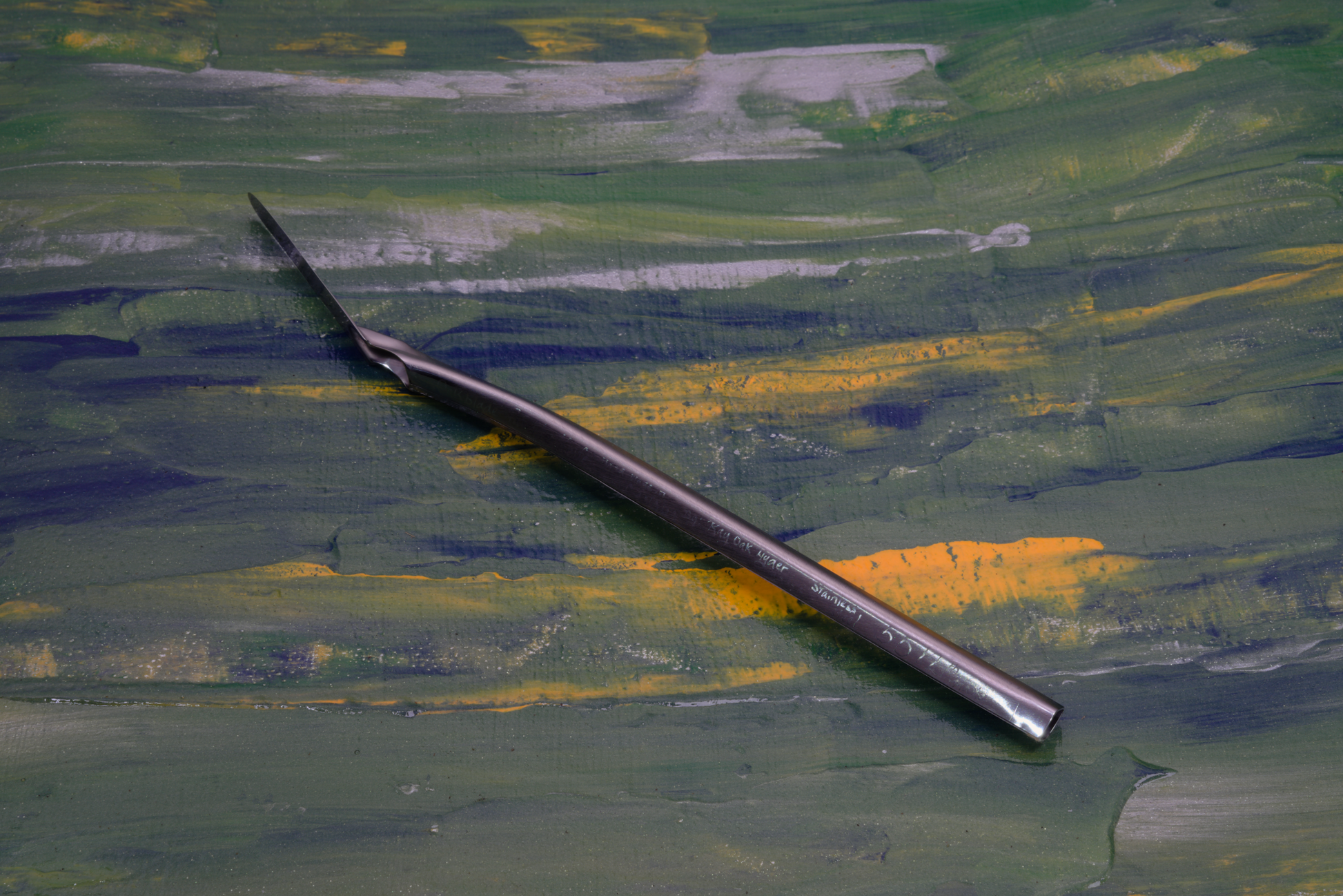 An Oakblade Palette knife with parallel straight edges meeting at a round tip.